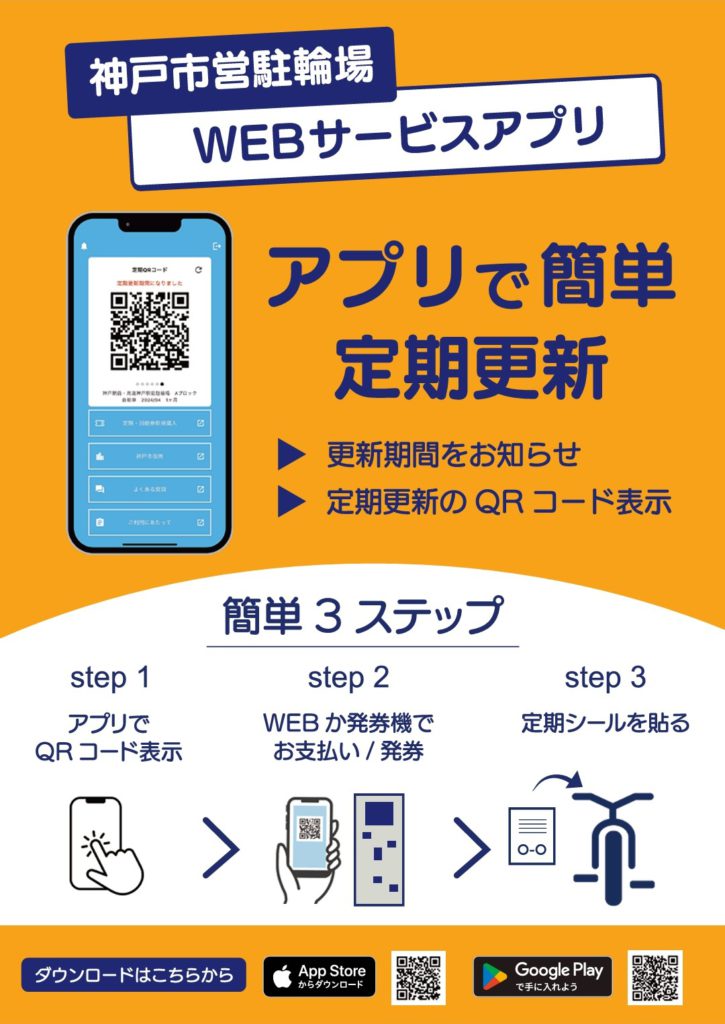 ・「神戸市営駐輪場 WEB サービス」がアプリで利用可能になります。