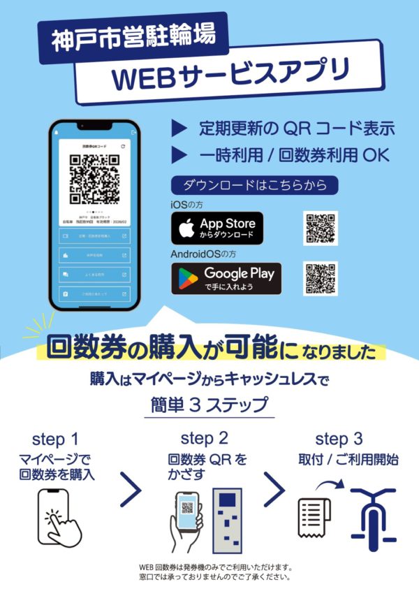 ・回数券も神戸市営駐輪場 WEB サービスでキャッシュレス購入が可能になります。